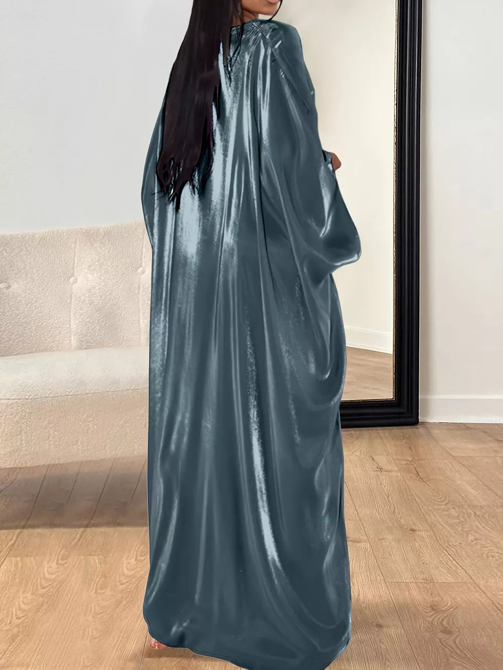 The Round Neck Kimono Sleeve Maxi Dress brings together modern minimalism and timeless elegance. Designed for effortless daily wear, its clean silhouette and flowing lines create a look that is both relaxed and refined.