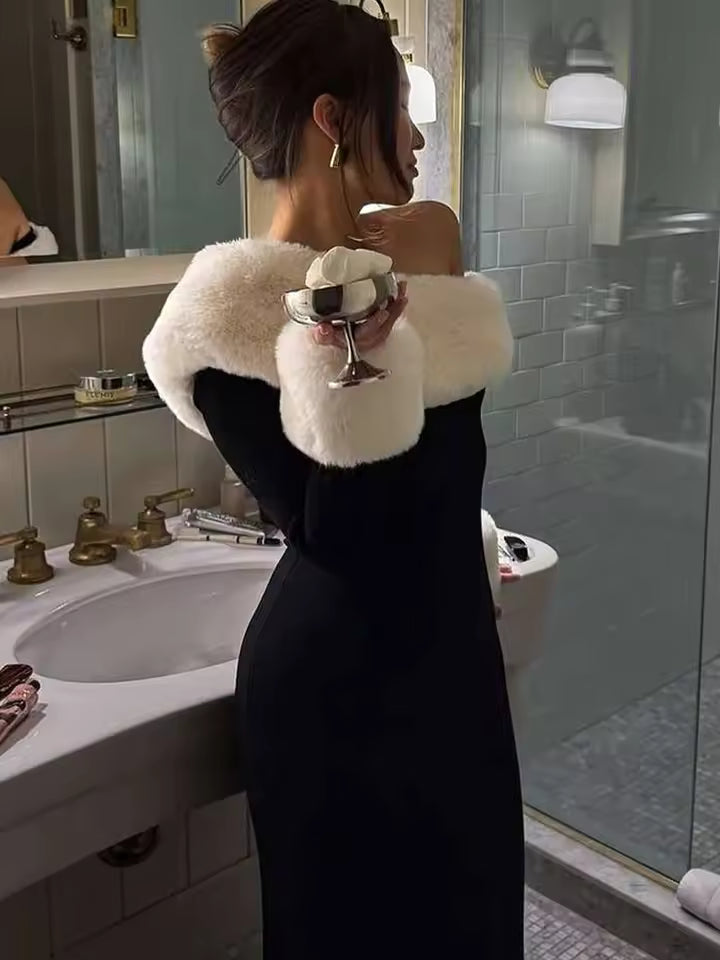 Dotée de détails furry patchwork doux et luxueux, elle apporte un contraste raffiné qui sublime la silhouette. Ces finitions hivernales ajoutent une touche chaleureuse et tendance, parfaite pour la saison froide.